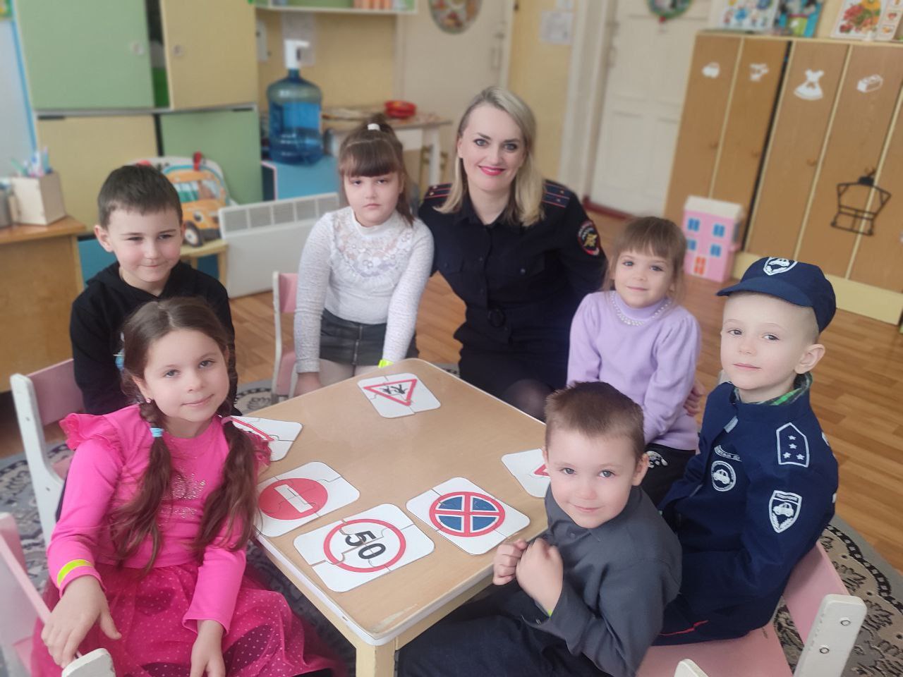 Особый восторг у ребят вызвала практическая часть встречи. С помощью тематических картинок, дорожных знаков и игрушечного автогородка они смогли наглядно разобрать различные дорожные ситуации.