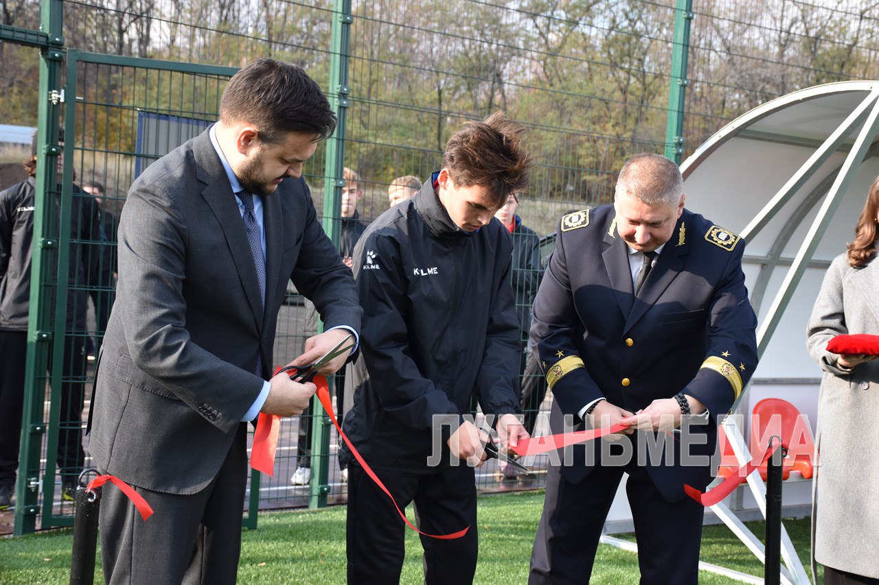 Первой открыли многофункциональную спортивную площадку под открытым небом. Футболисты из студенческой команды уже опробовали новое поле. Далее символическую красную ленточку перерезали на входе в отремонтированный зал бокса.