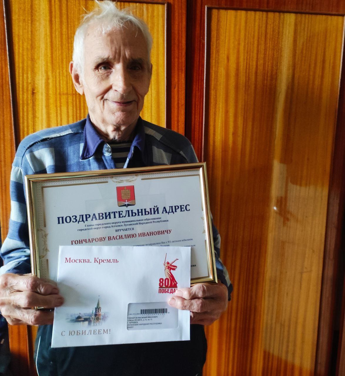 В Алчевске поздравили с 95-летним юбилеем труженика тыла, ветерана труда Василия Ивановича Гончарова
