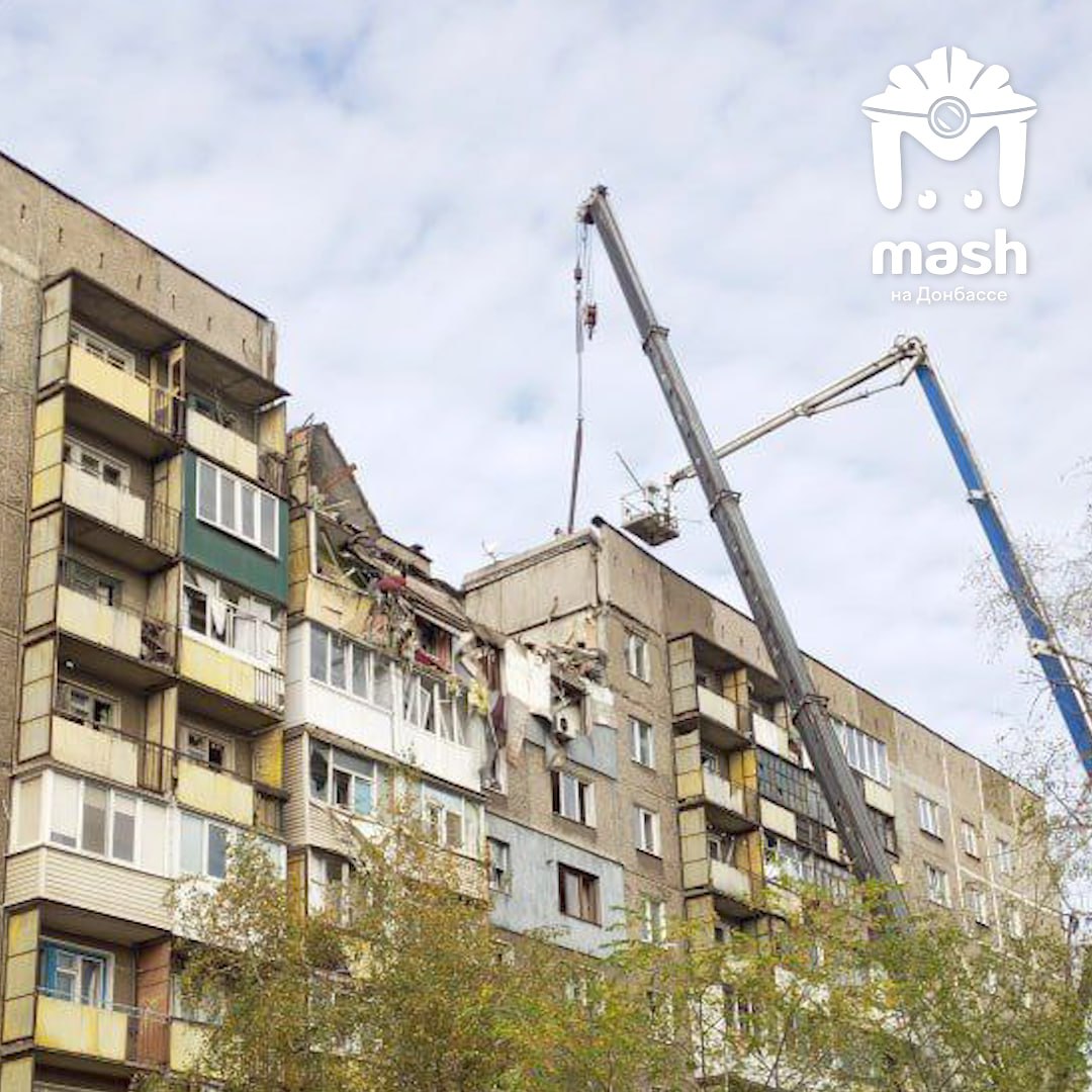 Завалы дома в Алчевске, где по предварительным данным взорвался газ, продолжают разбирать.