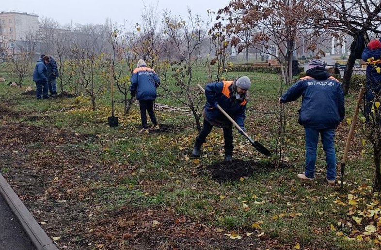МУП «Служба дорожного хозяйства и благоустройства города Алчевска ЛНР» проводит работы на территории города по уборке смета (ул. Ленинградская), уборке и благоустройству территории (Сквер Доблести и Славы, ул. Ленина, пр. Металлургов), обрезке деревьев (ул.Чапаева), восстановлению наружного освещения города.