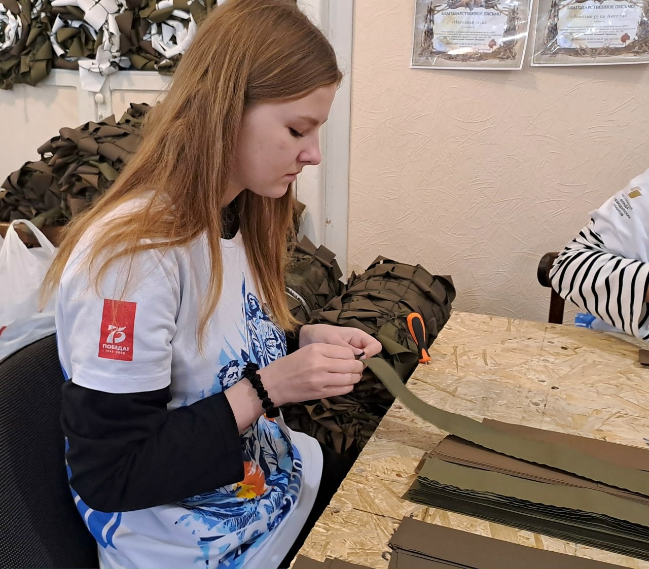 В рамках специального формата «Помощь СВО» проекта «#МЫВМЕСТЕ — месяц добрых дней» активисты Добро.Центра, волонтёры Победы на базе волонтерского движения «Золотые руки Ангела», объединились для важного дела — плетения маскировочных сетей.