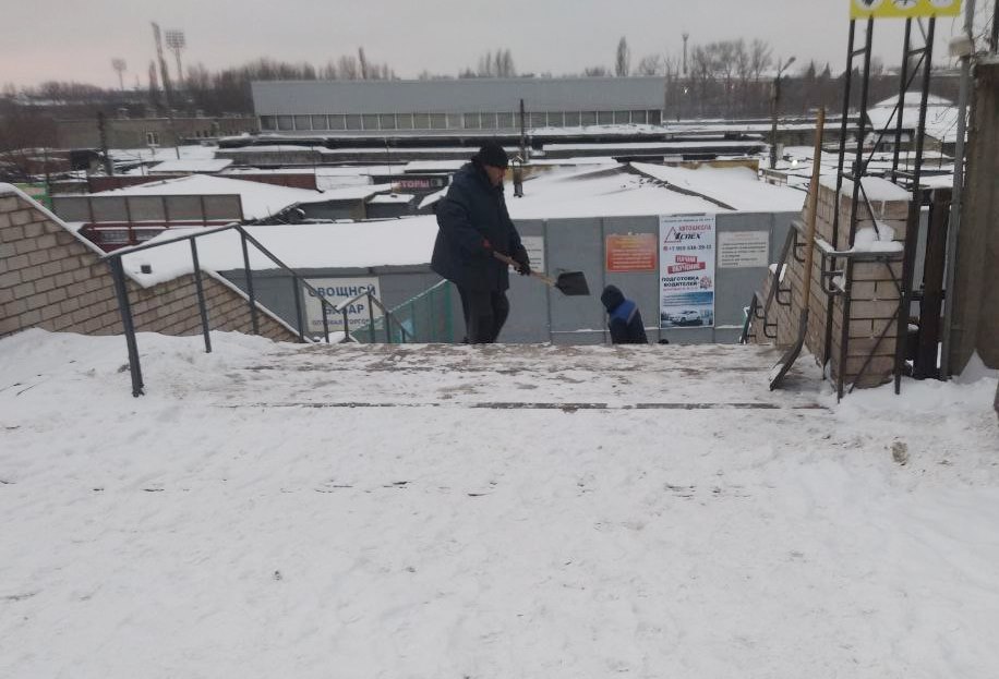 Работниками МУП "Рынок ЛНР" сегодня продолжены работы по очистке территории предприятия от снега и наледи.
