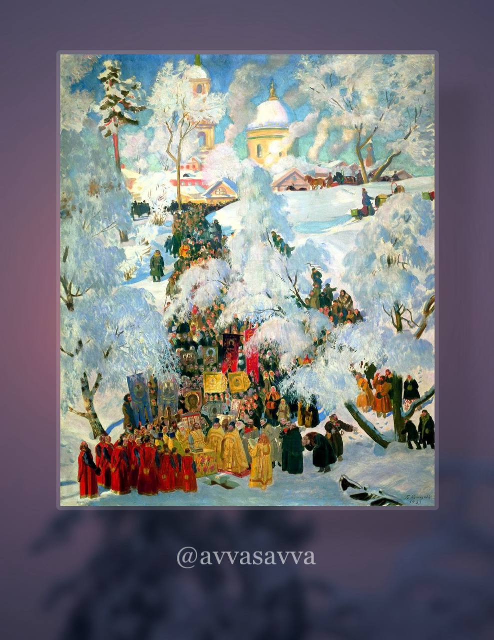 Картина: «Крещенское водосвятие», Борис Михайлович Кустодиев 1915
