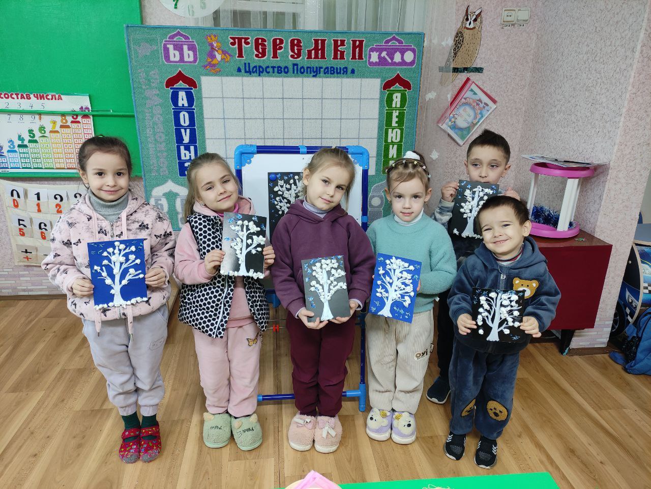 В группе №10 ГБДОУ ЛНР №12 «Родничок» состоялось увлекательное занятие, посвященное созданию зимней сказки своими руками. Воспитанники осваивали технику объёмной аппликации, создавая пушистые «Зимние деревья» из комочков салфеток. Перед началом занятия воспитатель Алдохина Оксана Николаевна напомнила детям о красоте зимнего пейзажа, о пушистом снеге, укрывающем деревья.