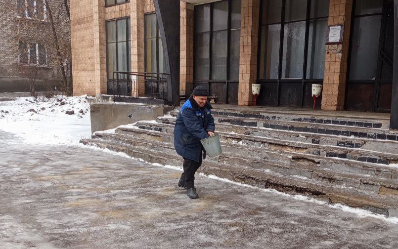 13 февраля работники учреждений физической культуры и спорта Алчевска убирают территории учреждений от наледи, посыпают противогололедным материалом подходы и подъезды к учреждениям. Это вопрос безопасности для детей, идущих на тренировку, для спортсменов, для родителей, сопровождающих своих малышей.
