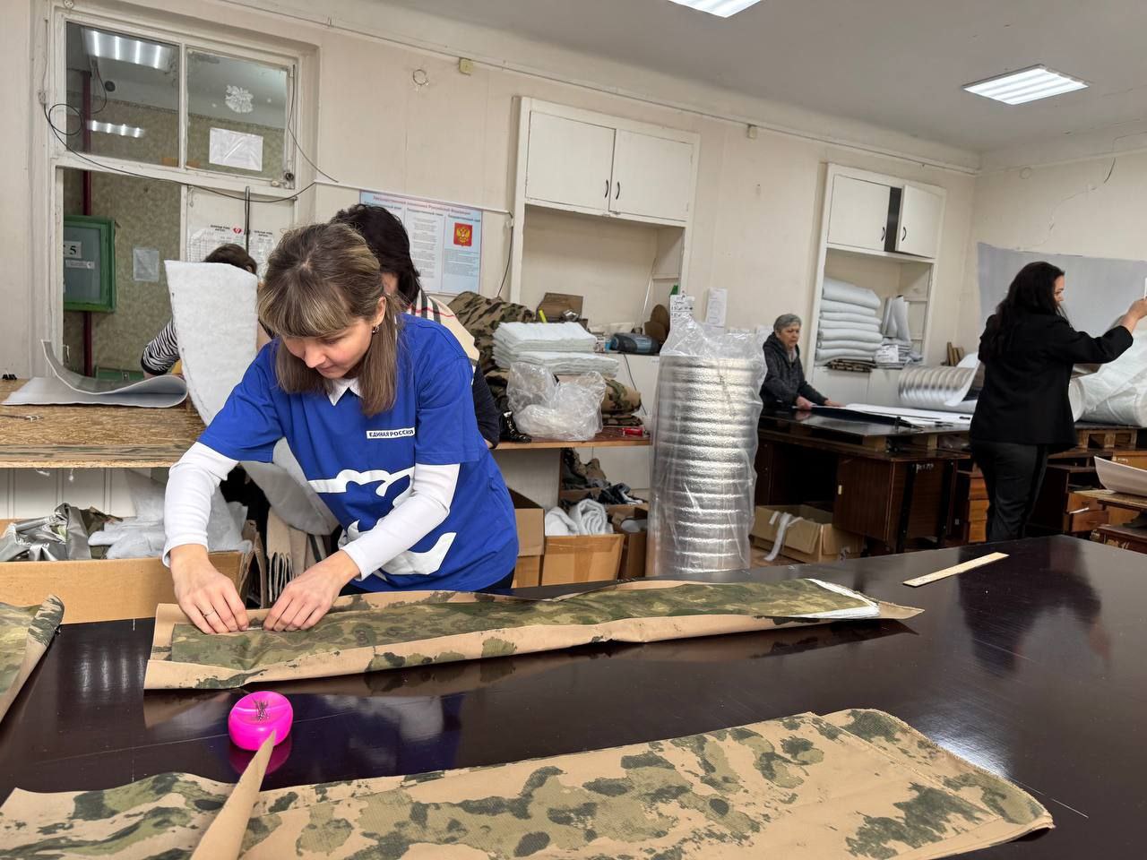 Также по просьбе волонтеров секретарем первичного отделения №32 Игорем Дубиной организовано изготовление и доставка двух столешниц и специальных стоек-тканедержателей для раскроя и сборки противотеловизорных пончо. Данные приспособления помогут значительно сократить время производства изделий, каждое из которых спасает наших защитников на передовой.