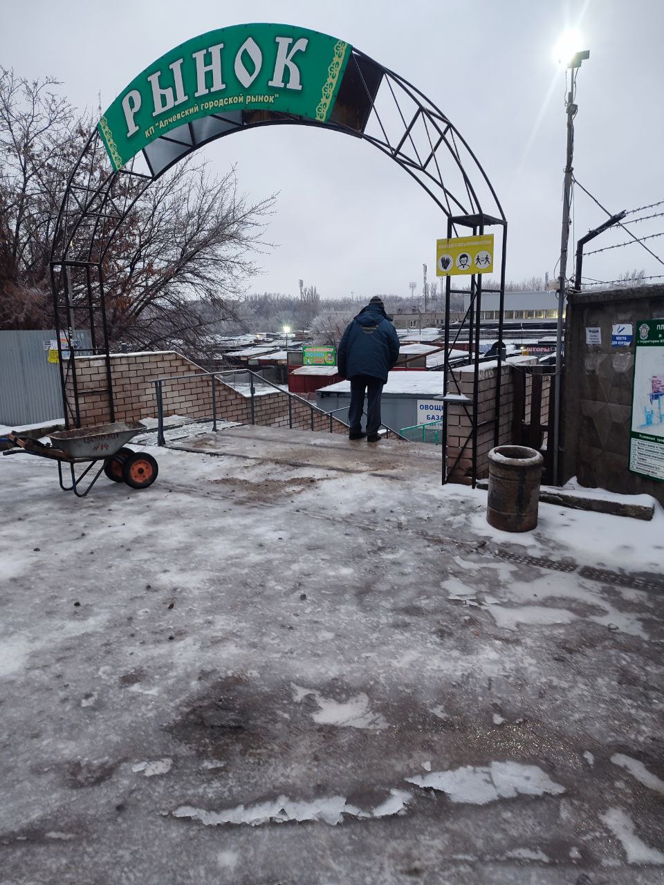 Работниками МУП "Рынок ЛНР" проводятся работы по очистке территории предприятия от снега и наледи, обработке противогололедными материалами основных лестниц и проходов для перемещения посетителей