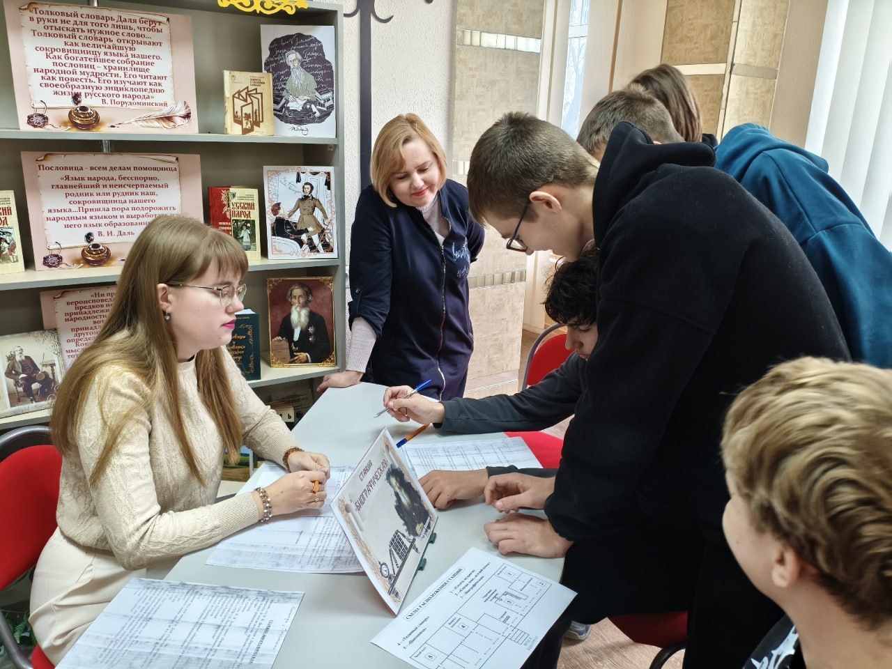 В рамках празднования 225-летия со дня рождения Владимира Ивановича Даля 26 марта 2026 года в читальном зале модельной библиотеки #БИБЛИОПРОСПЕКТ города Алчевска состоялся захватывающий интеллектуально-лингвистический квест «Наследие Владимира Даля». Участниками стали учащиеся 9-А и 9-Б класса Алчевского информационно-технологического лицея.