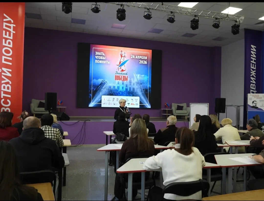 Перед написанием диктанта с напутственным словом выступила Татьяна Семенюк- депутат городского округа муниципальное образование городской округ город Алчевск Луганской Народной Республики. Она подчеркнула важность сохранения исторической памяти и передачи знаний молодому поколению.